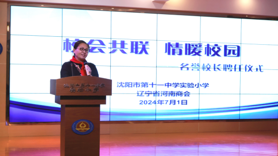 王虹校长表示今天我们举行简短而隆重的仪式,为各位名誉校长颁发聘书。感谢各位名誉校长对学校发展的支持助力,感谢辽宁省河南商会搭建平台,把商会里的各个企业带进校园,让学校拓宽教育边界,融通教育格局。更感谢区教育局对学校办学理念的高位引领,融智赋能。