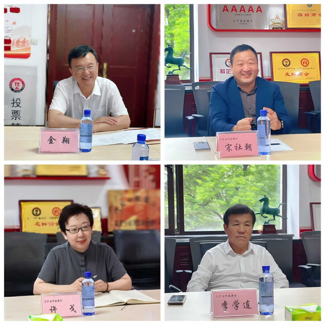 2025年6月10日,盛夏之际,沈阳市委统战部副部长、市工商联党组书记金翔带领市工商联机关党委专职副书记崔彦宏、对外联络部王博文,莅临商会开展调研工作。本次调研以党建工作为核心,同时聚焦商会项目发展及有待解决的问题,旨在为商会高质量发展注入强劲动力。我商会会长宋社朝、常务副会长李学连、秘书长许戈参加了座谈。