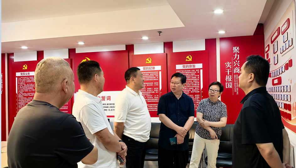 副主席马跃峰一行实地参观了商会办公场所和党建文化墙,详细听取了商会成立近十年来的工作汇报。马跃峰副主席对商会新一届领导班子的战略思维给予高度评价,特别肯定了商会以“三维赋能体系”为核心的发展模式,以及通过“内循环经济体系”为会员企业纾困解难、搭建政企桥梁、创造社会价值的创新实践。