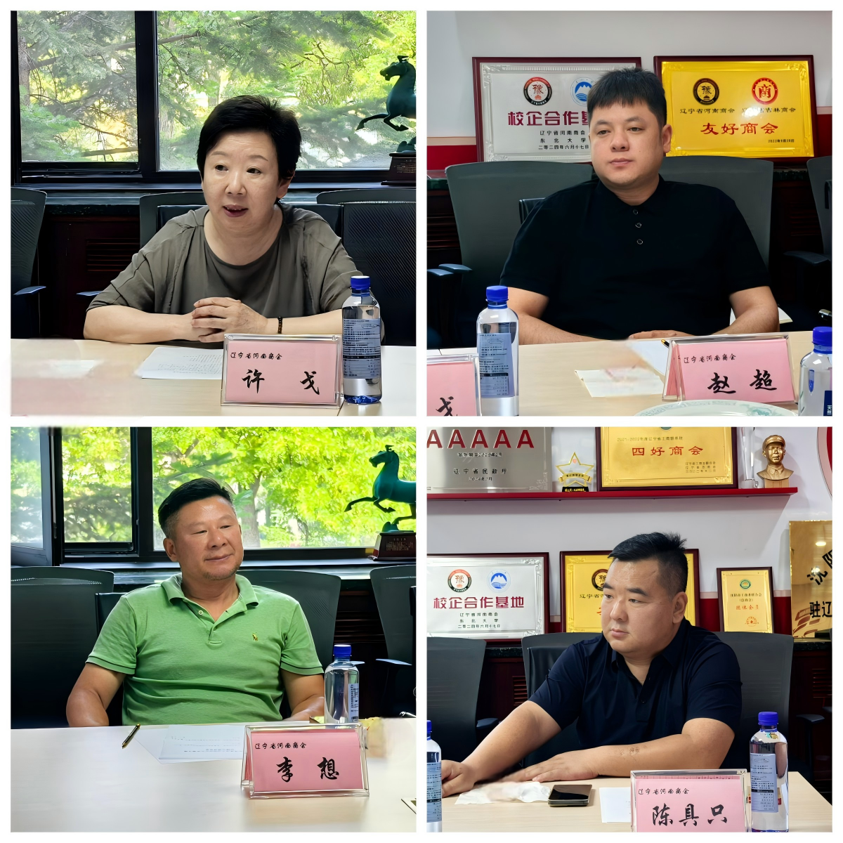 6月24日上午,成都市双流区人民政府驻京津冀区域联络处副主任吴斌、罗明一行来到河南商会考察交流。商会秘书长许戈,常务副会长、中交实业(辽宁)集团有限公司总经理赵超,副会长、沈阳李想果业有限公司总经理李想,会企彦霖创意广告(沈阳)有限公司总经理陈具只等全程接待陪同。