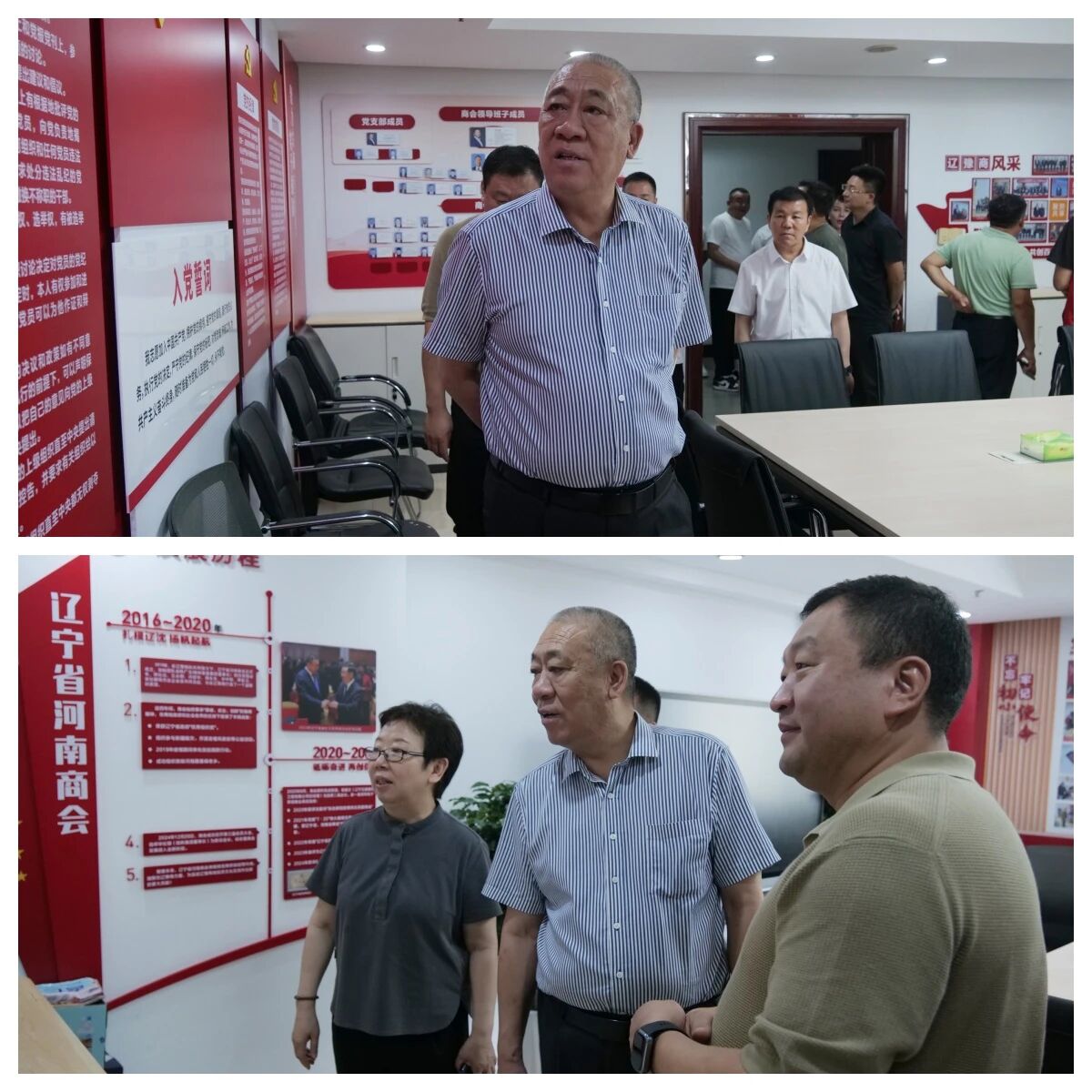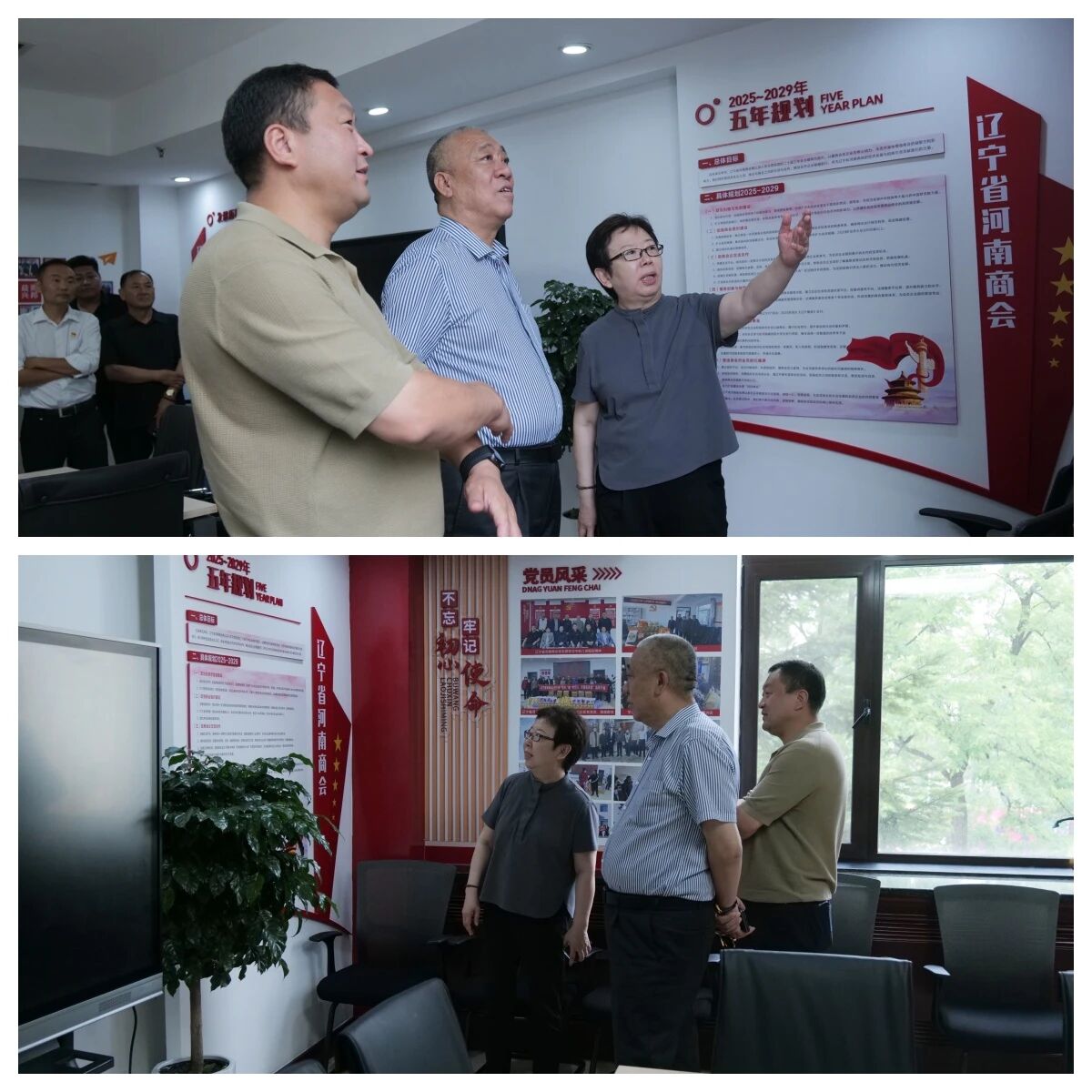 崔培军一行实地参观了商会办公场所和党建、文化墙,商会秘书长许戈向崔培军董事长介绍了辽宁省河南商会发展历程,并重点介绍了本届商会换届以来,商会以“三维赋能体系”服务会企(即:政治赋能、发展赋能、责任赋能),商会企业的发展备受省市政府关注。目前商会队伍在不断扩大目前已发展近300家企业。2024年商会荣获了“5A级社会组织”称号,这是对商会规范化建设和服务能力的最高认可。墙上,“辽宁省四好商会”“年度优秀商会”等牌匾熠熠生辉,崔培军驻足凝视,频频点头:“商会不仅是经济合作的平台,更是文化传承的载体。你们商会把中原文化与东北精神结合起来,这种创新值得点赞。”