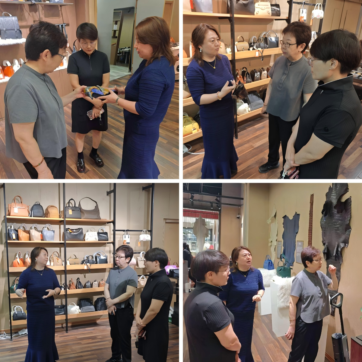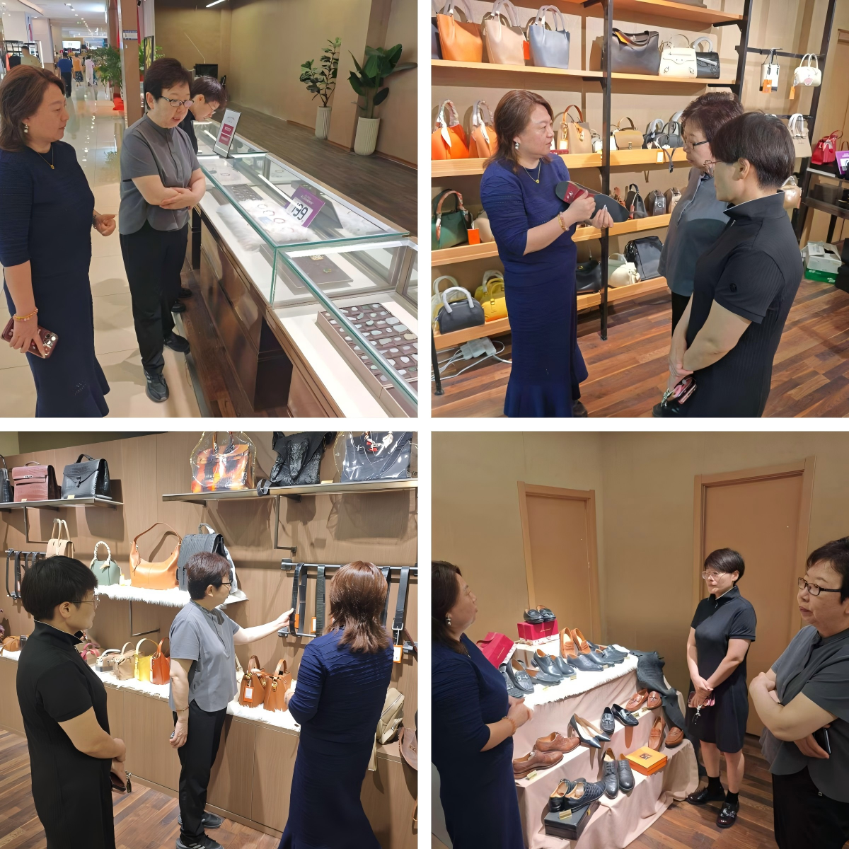 王芳总经理对商会一行的到来表示热烈欢迎,她带领大家参观了店内的皮具和珠宝售卖区。在参观过程中,她详细介绍了公司生产的皇室高端定制皮鞋和皮具,从皮料的选择、制作工艺的传承到设计理念的创新,每一个产品都讲解得细致入微。参观结束后,商会一行人都对店内的产品赞不绝口,并给予了高度评价。随后,在王芳总经理的邀请下,商会一行人来到了她的办公室进行了交流。