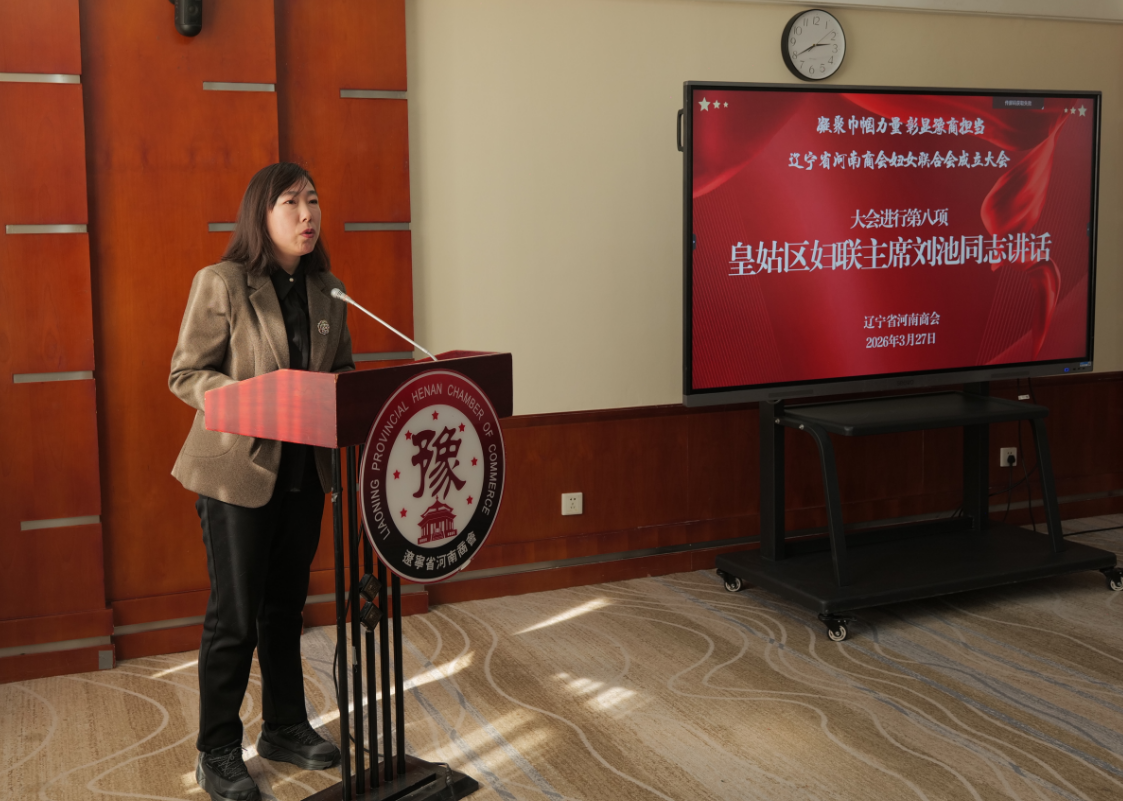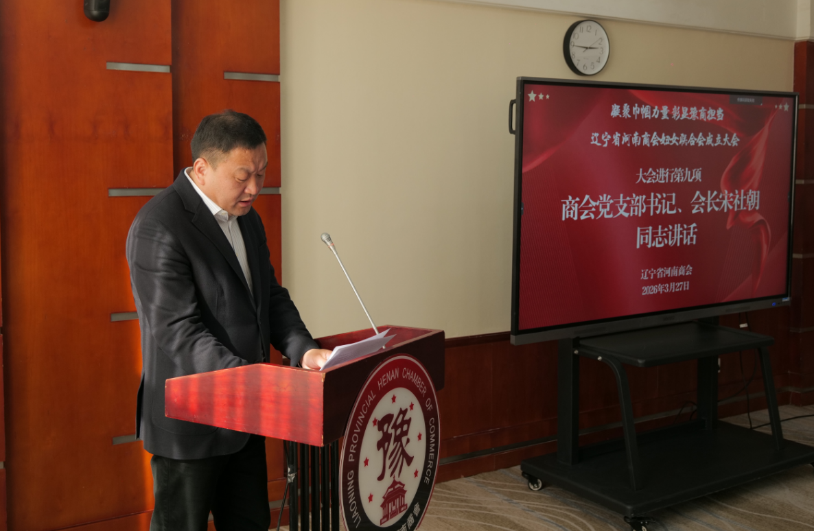 2026年3月27日,辽宁省河南商会“凝聚巾帼力量,彰显豫商担当”暨妇女联合会成立大会在辽宁大厦隆重举行。会议现场布置温馨庄重,处处洋溢着喜悦与奋进的氛围。这是“十五五”开局之年,商会发展进程中极具里程碑意义的大事,更是全体在辽豫籍女同胞期盼已久的喜事。皇姑区妇联主席刘池,辽宁省河南商会党支部书记、会长宋社朝,商会党支部委员赵超、李培彬以及商会妇女代表30余人齐聚一堂,共同见证这一庄严而温馨的时刻,会议由秘书长许戈主持。