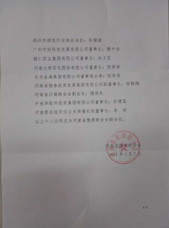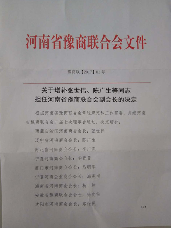 关于增补张世伟、陈广生等同志担任河南省豫商联合会副会长的决定
