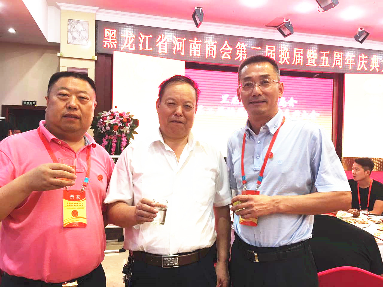 常务会长洪岩华、华中银与黑龙江省河南商会秘书长贾银增合影